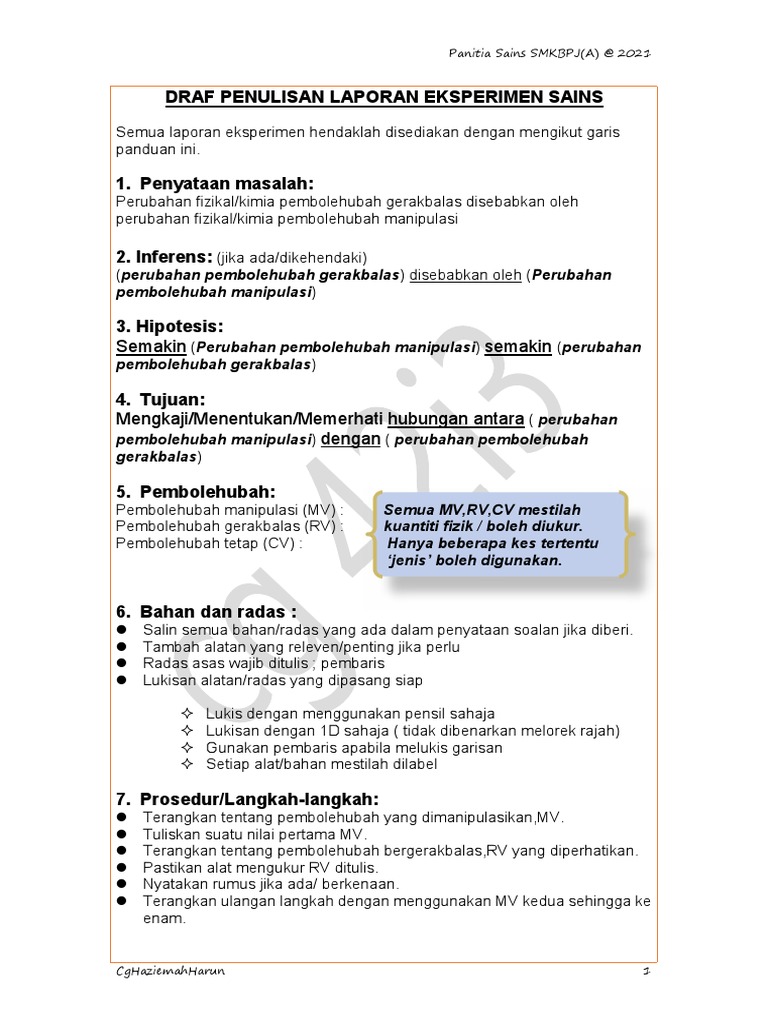 Draf Penulisan Laporan Eksperimen Sains Pdf